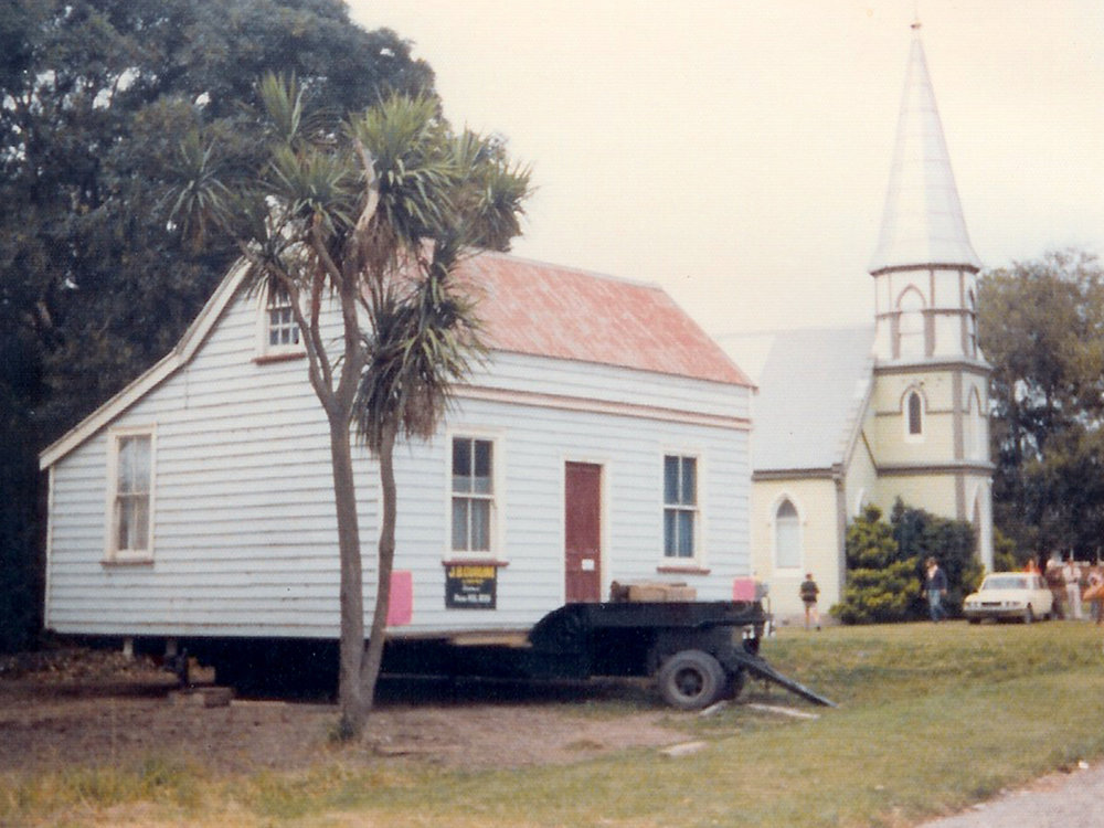 Image: Liffey Cottage on its trailer at the new site in James Street, Lincoln, 1977. Malcolm L A Gordon. Lincoln and Districts Historical Society (LHS112)