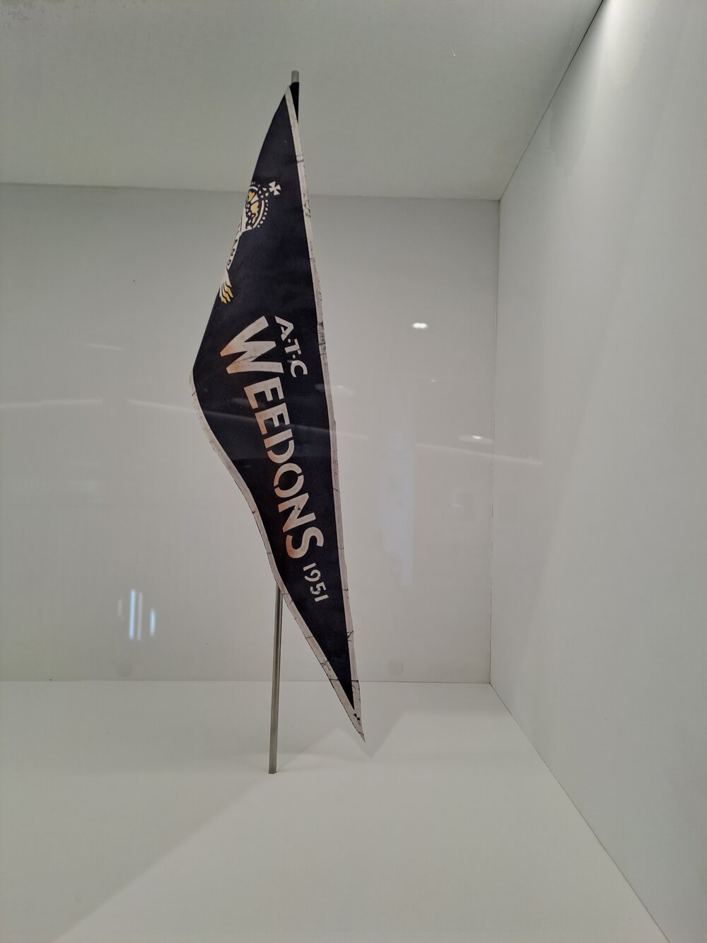 Image: Air Training Corps pennant, 1951 (replica) at the top of the exhibition case.